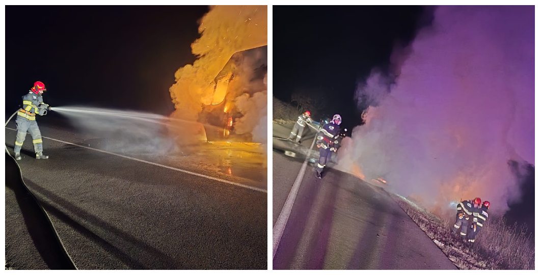 O autospecială a Detașamentului Ineu a intervenit pentru stingerea unui incendiu izbucnit la un microbuz, sprijinită de Serviciul Voluntar pentru Situații de Urgență Târnova. Potrivit intervenției, flăcările au afectat compartimentul motor și cabina vehiculului, iar incendiul a fost lichidat fără extindere la alte bunuri sau vegetație.