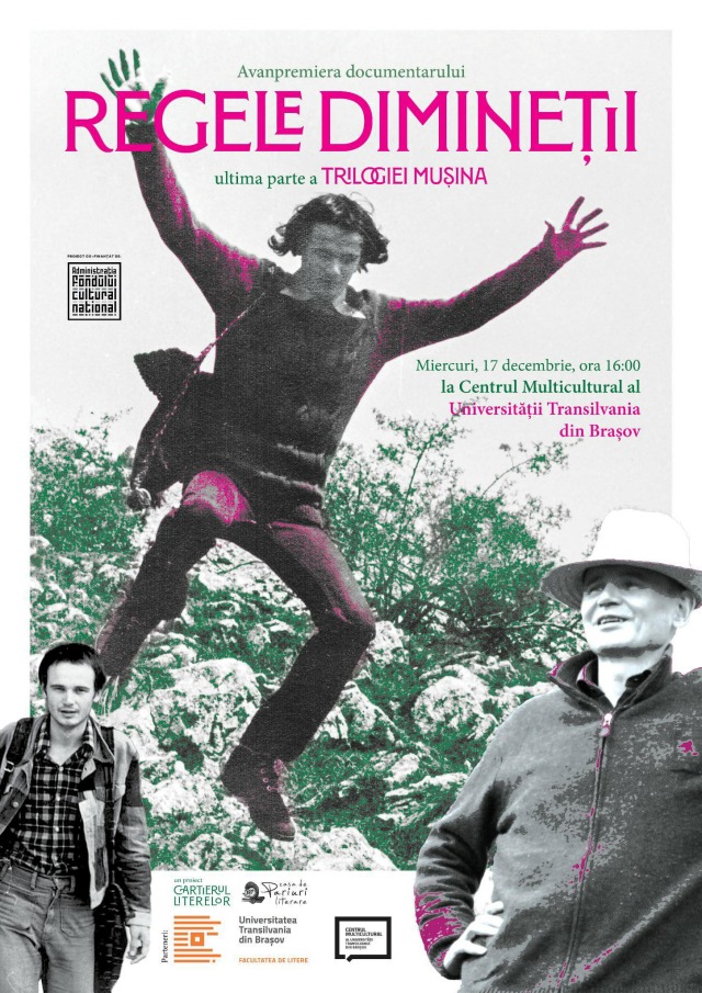 Centrul Multicultural al Universității Transilvania din Brașov invită publicul miercuri, 17 decembrie 2025, la avanpremiera documentarului Regele Dimineţii. Acest film omagiază viața și opera profesorului și scriitorului brașovean Alexandru Mușina, iar evenimentul are loc în cadrul Centrului Multicultural al universității. Sursele precizează că documentarul poartă numele volumului care i-a adus acestuia în 2010 premiul Uniunii Scriitorilor din România.
