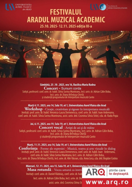 Universitatea „Aurel Vlaicu” din Arad organizează, prin Facultatea de Științe Umaniste și Sociale, a treia ediție a Festivalului „Aradul Muzical Academic” în perioada 25 octombrie - 12 noiembrie 2025. Evenimentul urmărește promovarea excelenței artistice și dialogul interdisciplinar în muzică.